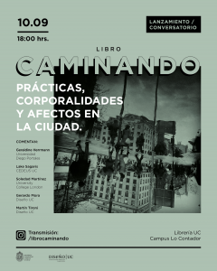 Con motivo del lanzamiento del libro “Caminando. Prácticas, corporalidades y afectos en la ciudad” sus editores, los docentes de @disenouc Martín Tironi y Gerardo Mora, invitan a participar de un conversarorio donde las invitadas son Lake Sagaris, Soledad Martínez y Geraldine Herrmann, tres especialistas en algunos de los temas abordados en la publicación.