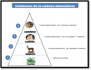 Figura 1: Representación didáctica de inspiración científica de las relaciones alimenticias entre no humanos. El contenido aquí representado es un estándar en la explicación de los modos de relación entre animales, profusamente reproducido y usado.