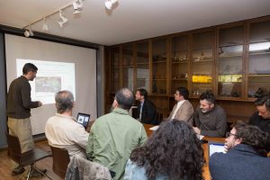 Seguido de ello, se dio paso a la presentación de los diferentes participantes del workshop. Por ejemplo, Patricia Peña (U de Chile) presentó sobre las brechas de género en el desarrollo y uso de tecnologías digitales y las recientes manifestaciones de activismo digital feminista en Chile. El debate giró en torno a lo temas de justicia digital y distribución de los acceso a la cultura digital, y el rol que puede desempeñar perspectivas feministas para repensar la relación entre datos y sociedad. Juan Ignacio Karich (Oxford University) mostró algunos hallazgos sobre la “vida social de los datos” que se generan diariamente en el Transantiago, además de su etnografía en back office de centros de vigilancia. Ignacio propone recuperar la noción de dispositivo de Foucault para analizar la circulación y formación de elementos heterogéneos que constituyen el accionar de los datos digitales. Sebastián Lehuede (LSE) reflexionó sobre cómo se podría aplicar un enfoque teórico decolonial, basado en la idea diseño autónomo y ontológico de Arturo Escobar en el campo de los estudios digitales. En particular, y desde el caso de la producción de datos astronómicos, exploró las fricciones Norte/Sur en términos de producción y procesamiento de datos, así como las posibilidades del diseño para poner en práctica formas alternativas de entender el rol de grandes cantidades de información en la sociedad. Liliana de Simone (UC) compartió los primeros hallazgos de su proyecto Fondecyt Inicio en torno a cómo la cultura del Malls en Chile permea nuestras sociabilidades y los modos de habitar la ciudad, transformándose en un articulador de identidades culturales y urbanas. En particular, analizó cómo los Malls están apropiándose de los discursos de ciudades inteligentes para ampliar sus campos de acción simbólico como funcional. Un ejemplo de ello es la implementación de cámaras de vigilancia con un sistema de reconocimiento facial. Marcos Chilet (UC) comentó sobre las relaciones cotidianas que establecen las familias chilenas en el consumo de televisión y a la vez como esas relaciones están siendo transformadas y resignificadas con la penetración de Internet, redefiniendo los modos de relación e interacción al interior de las familias, así como las frontera entre lo público y privado. Felipe Ragliantti (U. de Chile), expuso sobre sus experimentaciones entre humanos y mascotas, principalmente a través del diseño de un dispositivo para alertar emergencia para perros, mostrando los enredos y resistencias que surgen entre tecnologías, humanos y animales. El estudio abrío una serie de preguntas sobre los enredos potenciales entre humanos, más que humanos y tecnologías. Ricardo Vega mostró los avances de su proyecto de visualización digital experimental y crítica en torno a la Constitución de los ochenta en Chile, argumentado sobre el rol de la dimensión estética para la generación de conciencia y compromiso en torno a los dispositivos que nos gobiernan: la Constitución). Matías Valderrama, por su parte, presentó algunos avances preliminares sobre la Red Nacional de Monitoreo que busca instalar cientos de sensores por casas de todo Chile para lograr un conocimiento más acabado y “realista” sobre el comportamiento ambiental de las casas. Todas estas presentaciones manifiestan cómo se va redefiniendo los modos de sociabilidad y de hacer espacio mediante el uso de las tecnologías digitales en la vida contemporánea, levantando importantes preguntas sobre cuáles son los usos esperados o programados, sobre los grados de determinación o coacción que presentan, y sobre los modos de objetivación/subjetivación que producen los diseños de los dispositivos digitales.