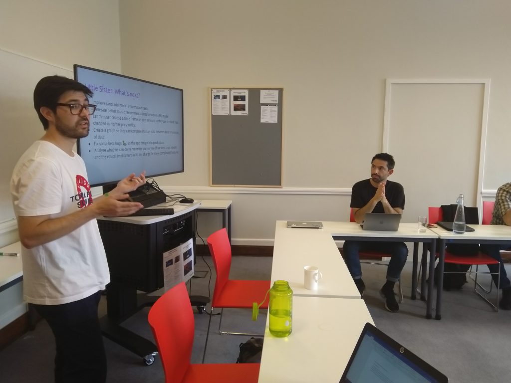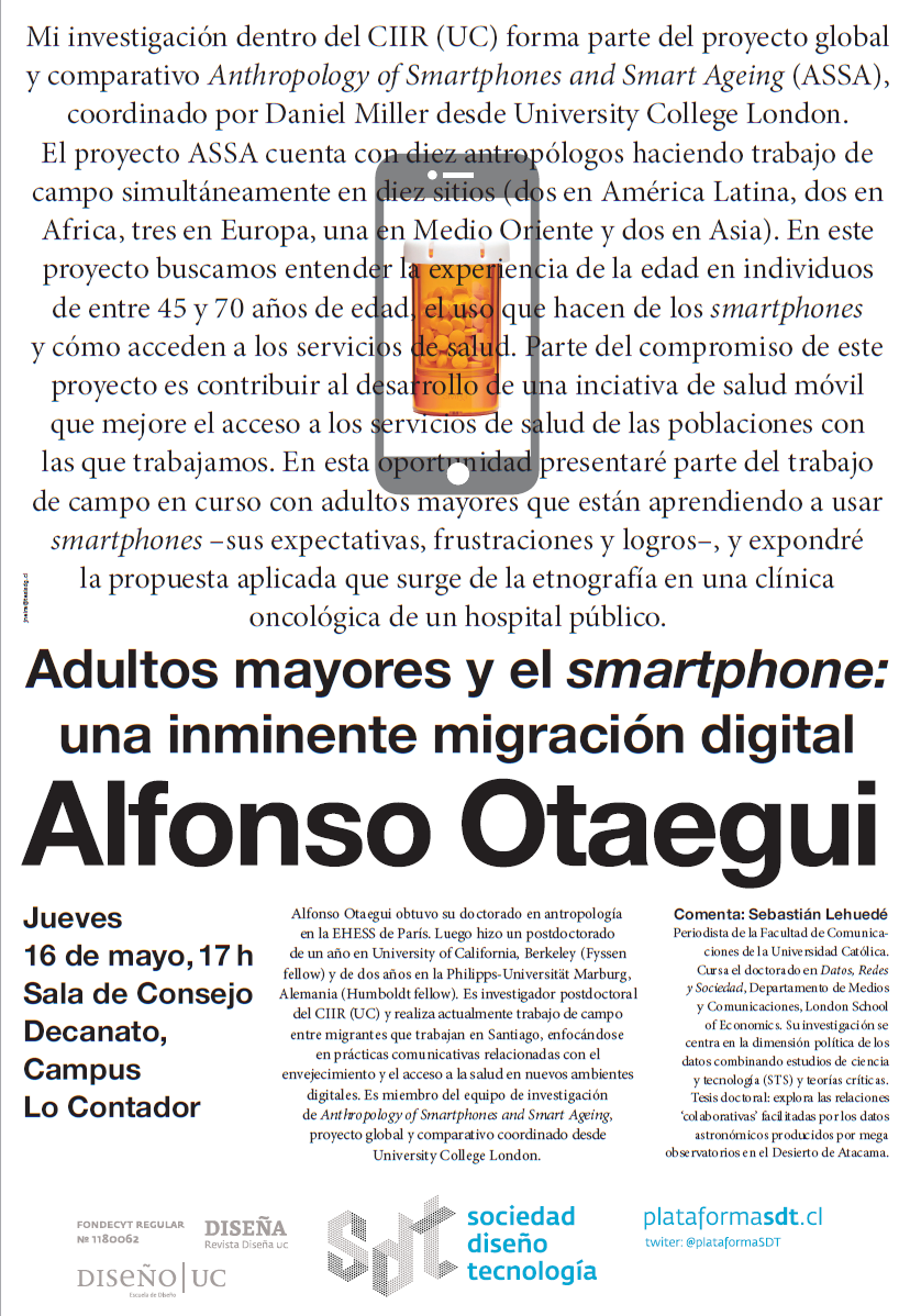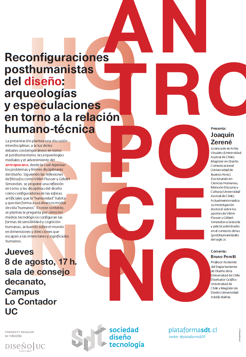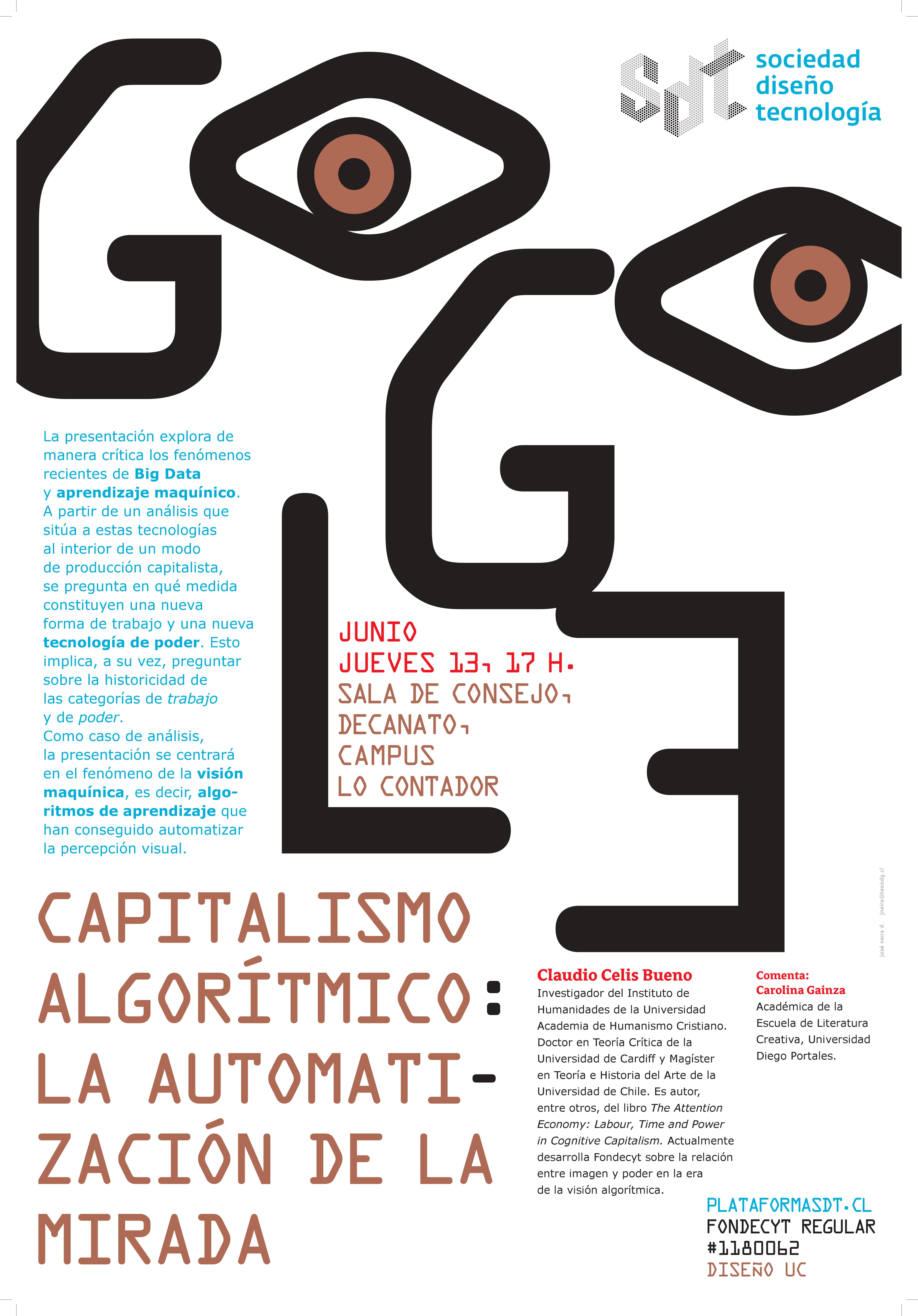 A sala llena, el pasado 13 de junio de 2019 se realizó la octava sesión del seminario abierto Sociedad, Diseño y Tecnología. En la ocasión contamos con la presentación de Claudio Celis Bueno, Doctor en Teoría Crítica de la Universidad de Cardiff, investigador del Instituto de Humanidades de la Universidad Academia de Humanismo Cristiano y actualmente desarrolla un proyecto Fondecyt sobre la relación entre imagen y poder en la era de la visión algorítmica. Para escuchar el registro completo de la sesión puede visitar nuestro podcast: