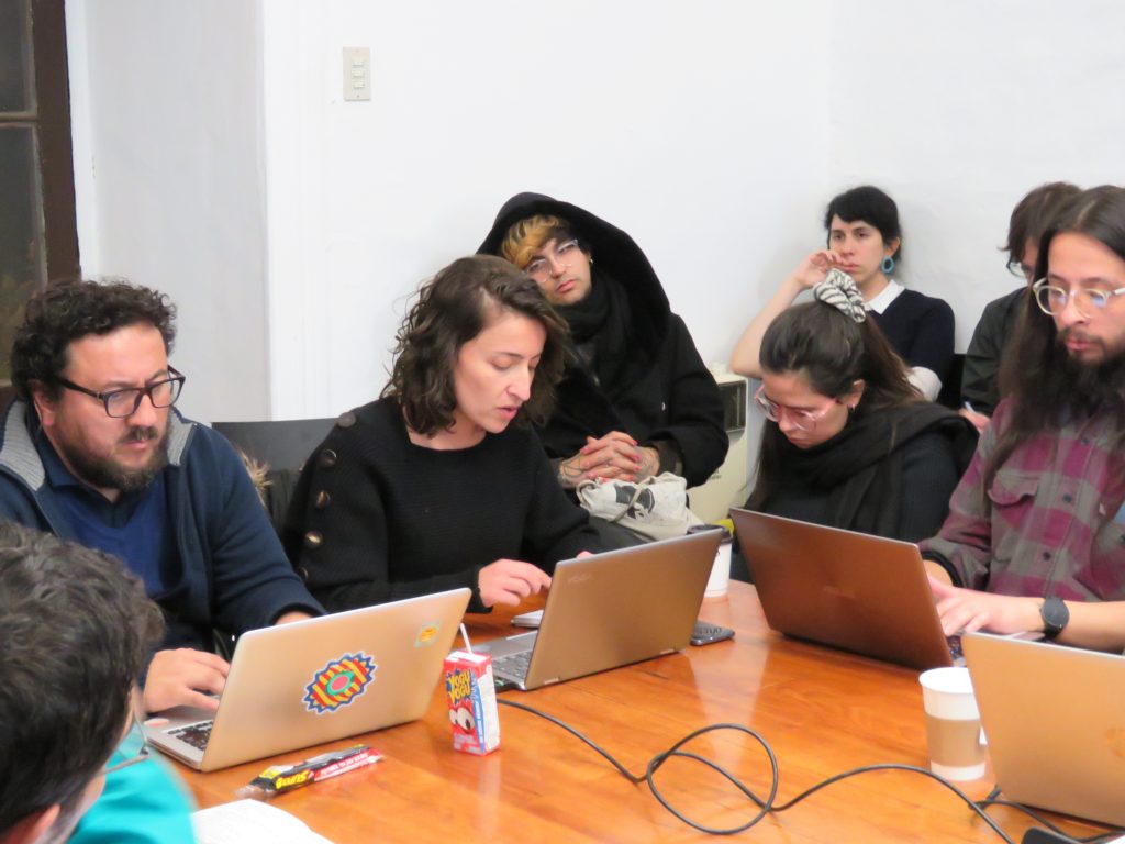 Seguido de la presentación, contamos con los comentarios de Carolina Gainza, doctora en literatura y lenguas hispánicas de la Universidad de Pittsburgh y académica de la Escuela de Literatura Creativa de la Universidad Diego Portales. Como un verdadero hipertexto, el comentario de Carolina siguió múltiples caminos con múltiples pistas y enlaces a trabajos literarios relevantes. Carolina planteo sugerentes interrogantes para la discusión: qué nos pasa a nosotros lxs humanxs con toda está automatización, cómo se redistribuyen las agencias en juego más allá de lo humano. Como abordar esas inteligencias no-humanas en sus lógicas y agencias radicalmente otras. Cómo nuestras definiciones de inteligencia o conciencia tienen que ser repensadas ante y con las maquinas.